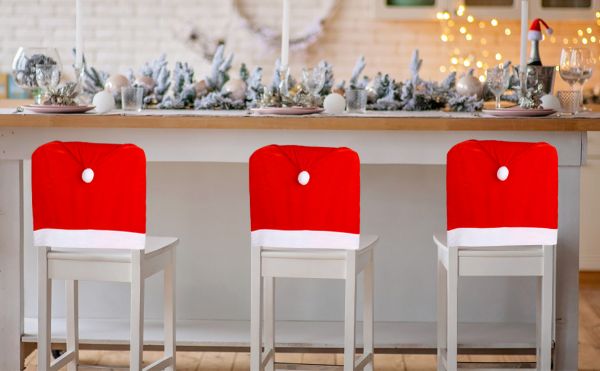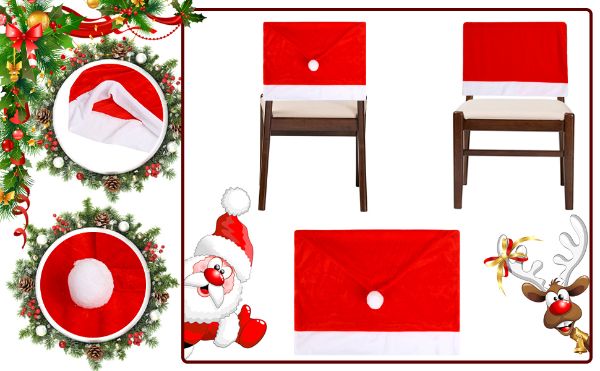 A piros kalapos széktámlák tökéletesek a karácsonyi szezonban, jó beltéri dekorációk otthon, irodában és osztályteremben, csodálatos karácsonyi benyomást hagynak barátaidnak, családodnak.
