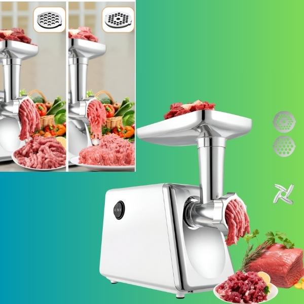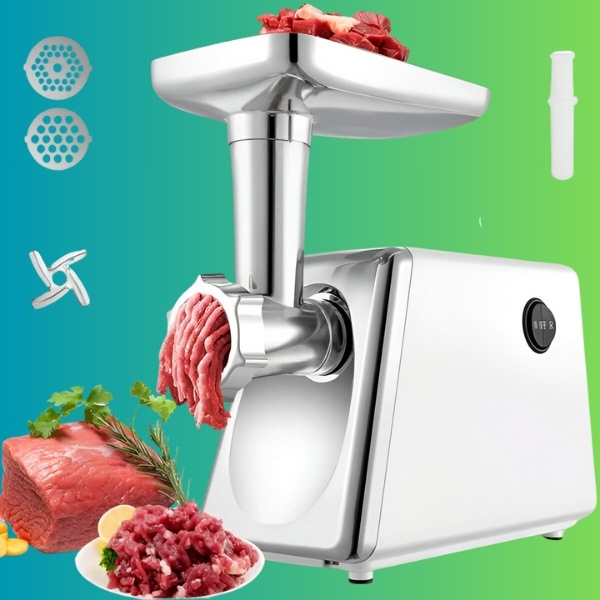 📦 Elektromos húsdaráló + ételtoló + 2x vágólemez + 1x penge.