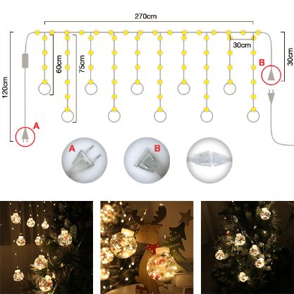 A világító golyókkal díszített dekoráció függöny formájú. Ha felakasztod őket, igazi karácsonyi mesét alkotsz