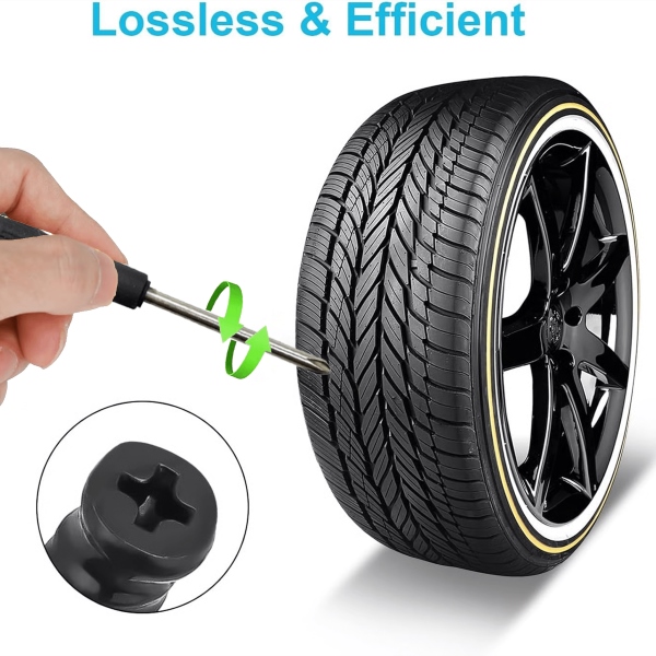 Egyszerűen csavarja be a gumiszeget, hogy ideiglenesen csökkentse a levegőszivárgást a futófelület kisebb sérüléseinél, és biztonságosan eljusson a legközelebbi szervizig.