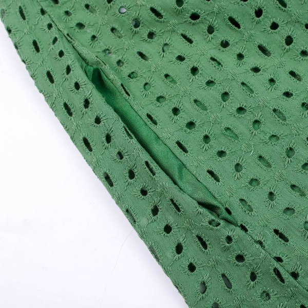 Párosítsa ezt a ruhát magas sarkú cipővel az elegáns megjelenéshez, vagy szandállal a laza, friss stílushoz. A játékos fűzőlyukak és az apró disz részletek vidám és könnyű hangulatot kölcsönöznek a ruhának, így sokféle megjelenéshez alkalmas. Tökéletes kiegészítője lehet egy napszemüveg és egy kalap a tökéletes nyári hangulat érdekében.