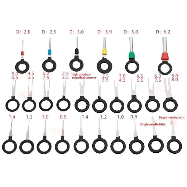 Ez a termináleltávolító szerszámkészlet megkönnyíti a hibás terminálok eltávolítását a vezetékek vagy csapok károsítása nélkül – ez minden szerszámosládában nélkülözhetetlen eszköz.