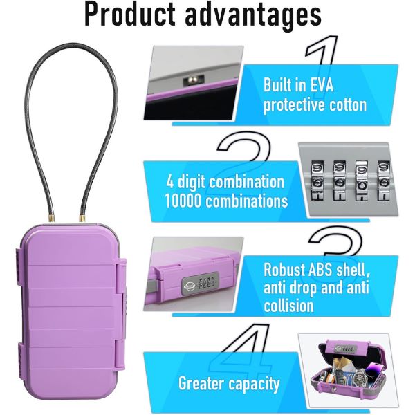🔒 Az utazási széf zárdoboz ütésálló, vízálló biztonságot nyújt megbízható 4 számjegyű kombinációs zárral a teljes nyugalomért.
